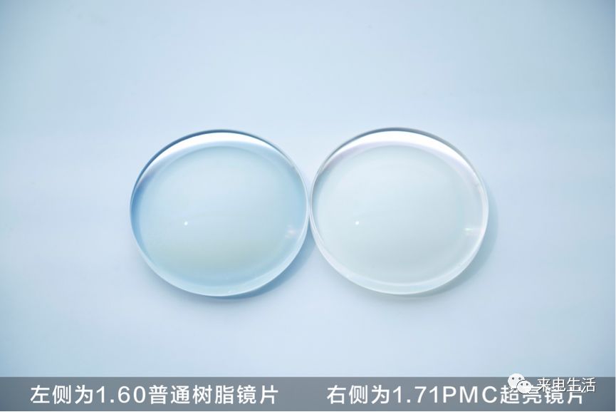 高颜值的标准之一就是 “身材”好,我们选择了度数均为600度的1.71PMC超亮镜片和1.60镜片进行厚度、重量测试(均为75mm直径的镜片):