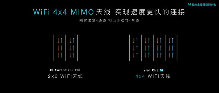 众所周知,网络信号的质量与天线息息相关,VIoT 5G CPE拥有创新四维全向5G天线模组设计,超HUAWEI 两维,因此WIFI覆盖面也大幅增强,带来更强5G信号接收能力,外加速度更快的WIFI 4×4 MIMO天线、6颗WiFi信号放大器等强悍硬件,VIoT 5G CPE能够全方位接收5G信号转化为WiFi信号,并带来超强穿墙能力,即使是大户型、复式房型,也能做到WIFI信号的全屋场景全覆盖,保证随时随地畅享5G高速生活。