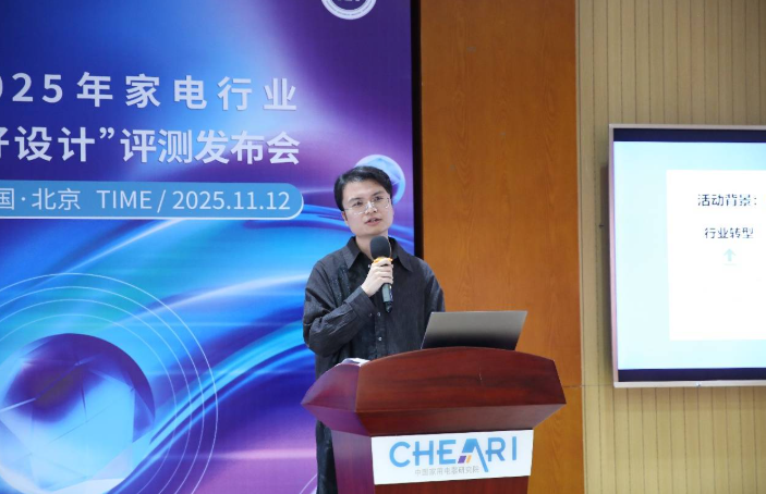 中国家用电器研究院设计研究与评测中心工程师杨运佳先生,详细解读了“好设计评测”项目的背景意义、实施流程,并系统拆解“好设计”评测的五大核心维度:功能设计、工业设计、结构设计、材料设计与用户体验设计。他总结2025年家电设计四大趋势:健康与节能双轮驱动、体验向精细化与场景化升级、AI深度渗透并推动智能适配与预判服务演进、美学与实用高度融合,并强调“好设计”必须实现“技术可落地、用户有感知、产业能可行”的三重价值统一。
