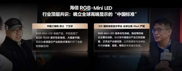 国际信息显示学会(SID)全球总裁严群也给予高度评价:“RGB-Mini LED技术是革命性突破,海信等终端企业整合创新标志着中国显示产业已告别跟随,正凭全产业链优势,以开放姿态与全球伙伴共建健康、极致、绿色的未来显示生态。”