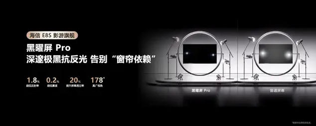 作为影游旗舰,海信E8S以“全能六边形战士”姿态,将全场景体验拉至顶配水准,适配家庭观影、高端电竞等多元需求。屏幕标配黑曜屏Pro,1.8%超低反射率可有效隔绝环境光干扰,彻底告别“窗帘依赖症”,即便正午阳光直射,画面依旧深邃通透,无需刻意调节环境光即可享受沉浸式观看。同时支持杜比视界第二代技术,XDR Pro 5300nits峰值亮度,让暗部细节清晰可辨,亮部峰值不刺眼,还原影片原生光影张力。
