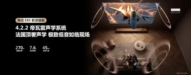 音质方面,搭载法国顶奢帝瓦雷4.2.2多声道声学系统,270W超强功率搭配7.6L巨型音腔,实现低至45Hz澎湃低音,无需外接回音壁即可构建影院级三维立体声场,观影时声临其境,游戏中能精准捕捉脚步声、枪声方位,助力电竞操作升级。